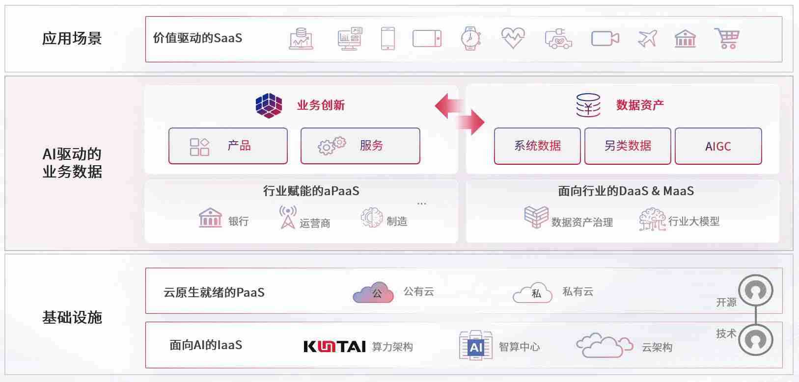 数字时代,,,,围绕企业数字化转型的关键要素,,PA旗舰厅数码开创性的提出数云融合战略和技术体系框架,,着力在云原生、、、、数字原生、、、、AI原生和信创产业上架构产品和服务能力,,,,为处在不同数字化转型阶段的快消零售、、汽车、、、金融、、医疗、、、、政企、、、、教育、、运营商等行业客户提供泛在的敏捷IT能力和融合的数据驱动能力,,,构建跨界融合创新的数字业务场景和新业务模式,,,助力企业级客户建立面向未来的核心能力和竞争优势,,全面推动社会的数字化、、、、智能化转型升级。。。。